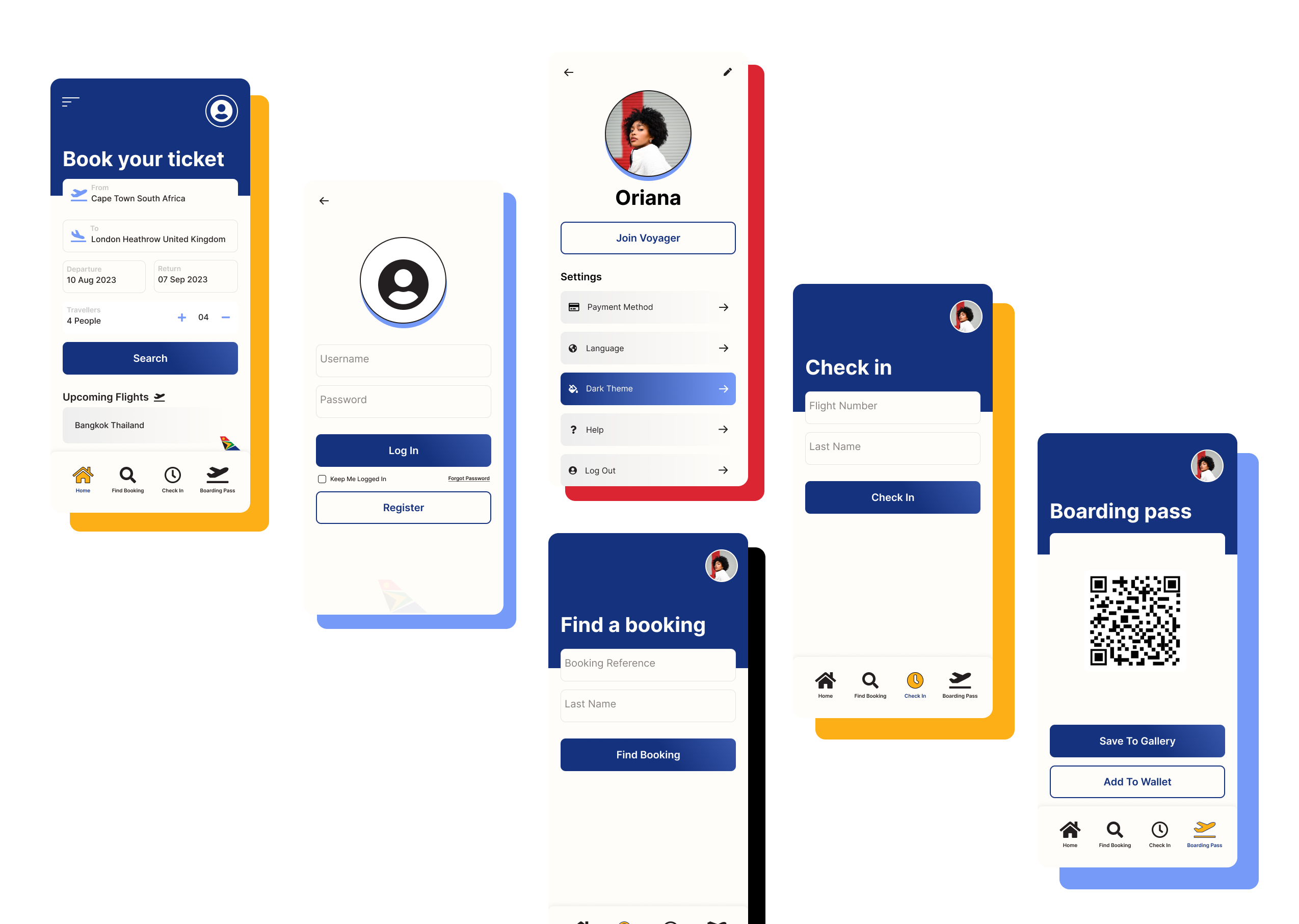 The main objective for downloading and using an airline app is to facilitate your boarding process. Most users just want to easily add their trip to the itinerary and then check in online up to 24 hours before the flight. With this in mind, I decided to make the homepage easy to access these key functions. Finding the booking, checking in, and having access to boarding passes.