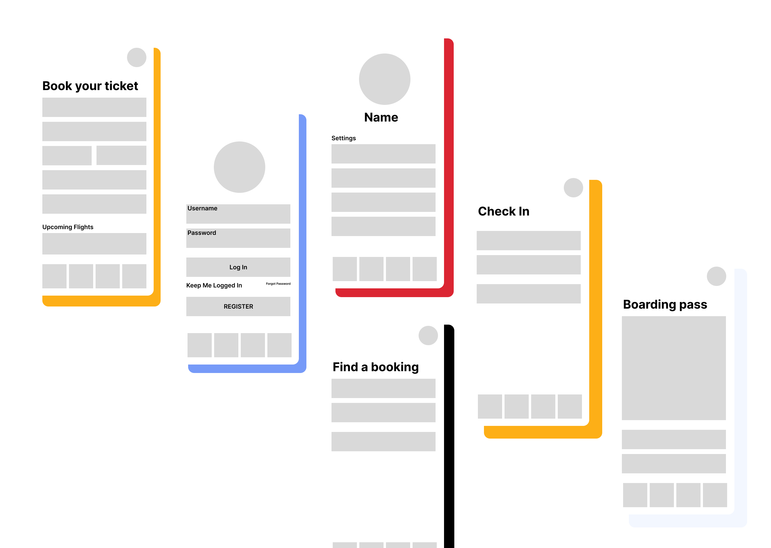My design process for this project was interesting because I didn’t follow the traditional steps, but it was all part of the learning process. I had an idea and just dumped them into mid-fidelity designs, this then helped me to see problems and what I needed to change easily. I then went back to the drawing board and created wireframes based on my research about the navigation system and other successful airline apps.